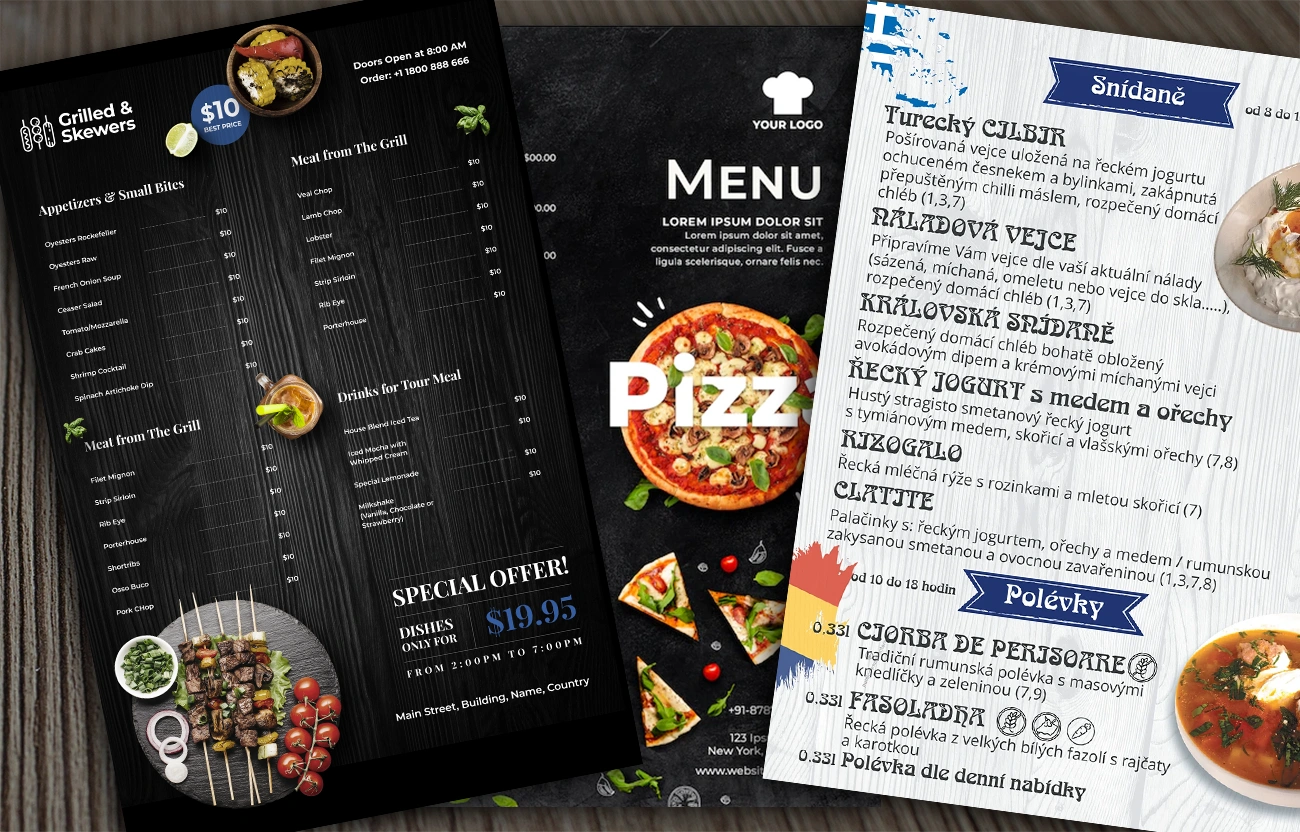 Tisk bannerů, menu a štítků nejen pro gastronomii – Vytvořte nezapomenutelný první dojem. Nabízíme profesionální tisk jídelních lístků s laminací, odolné venkovní bannery pro restaurace a design štítků na produkty.